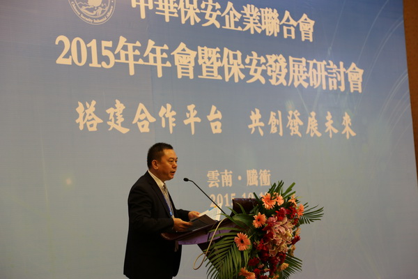 2015年10月17日,中華保安企業(yè)聯(lián)合會2015年年會暨保安發(fā)展研討會在云南騰沖市召開。聯(lián)合會顧問、全球安防聯(lián)盟主席理查德.切斯,聯(lián)合會顧問、新加坡JK咨詢控股公司董事長郭志豪先生應(yīng)邀出席了大會。近50家會員單位的70余名代表參加了大會。