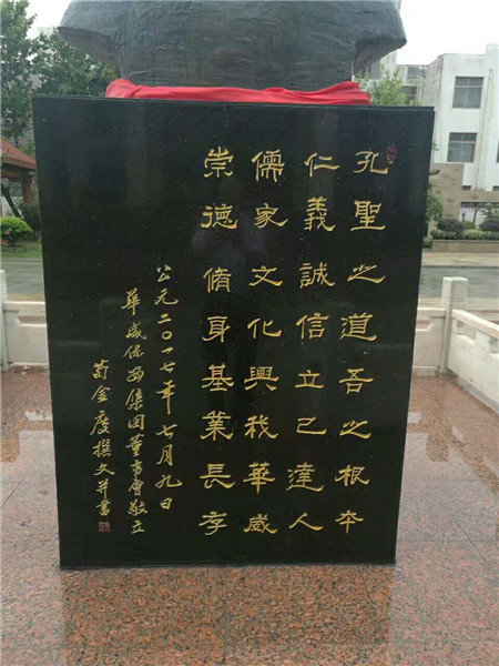 在儀式上,董事長、總裁荀金慶,常務副總裁楊中河共同為先師孔子像揭幕,大家聆聽了荀董事長為孔子像題寫的致辭:孔聖之道,吾之根本;仁義誠信,立已達人;儒家文化,興我華威;崇德修身,基業長存。華威員工代表向孔子像行鞠躬禮,表達了對這位先賢圣人的無限敬仰和尊重。