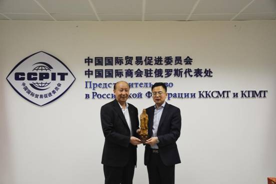 董事長(zhǎng)、總裁荀金慶一行還拜訪了中國(guó)國(guó)際貿(mào)易促進(jìn)委員會(huì)、中國(guó)國(guó)際商會(huì)駐俄羅斯代表處。貿(mào)促會(huì)首席代表徐金利先生與董事長(zhǎng)、總裁荀金慶就俄羅斯及周邊國(guó)家中資企業(yè)安保需求及安全問(wèn)題進(jìn)行了深度的交流、溝通。