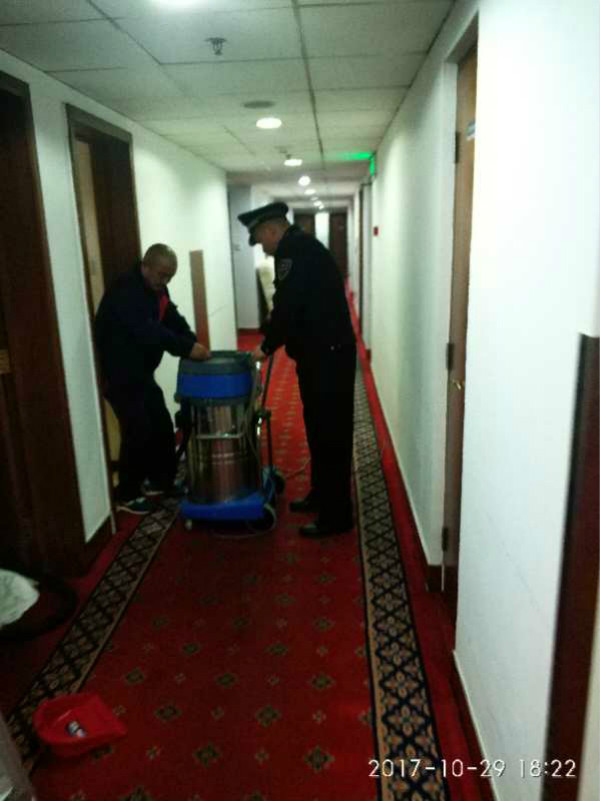 10月29日17點20,中石化管理干部學院中控室通過監控發現綜合樓6層655房間有水溢出,經巡邏人員查看,發現是天花板上管道破裂導致的漏水。副總孫強、主管楊繼偉趕到后立即組...