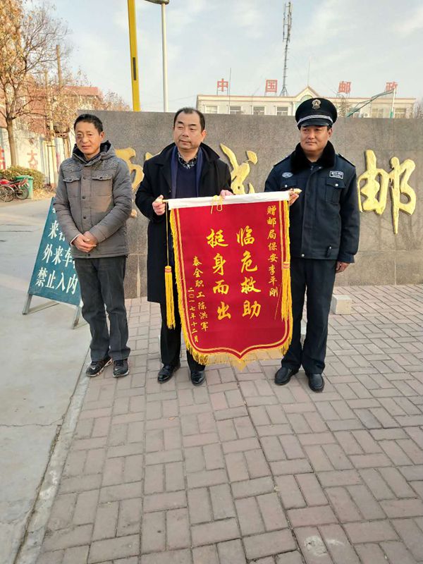 12月24號,鄄城郵局門前一輛電動轎車自燃,門衛保安員孫發軍和李平剛發現火情后,立刻通知辦公室,并及時提著滅火器奮力救火,將車主的損失降到最低,事后車主為表示感謝特...