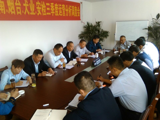 2016年10月12日上午,青島、濟南(安檢巡護)、煙臺分公司、犬業公司第三季度運營分析調度會在煙臺分公司召開。各分公司副總經理以上骨干和安檢巡護大隊中隊長以上骨干30余人...